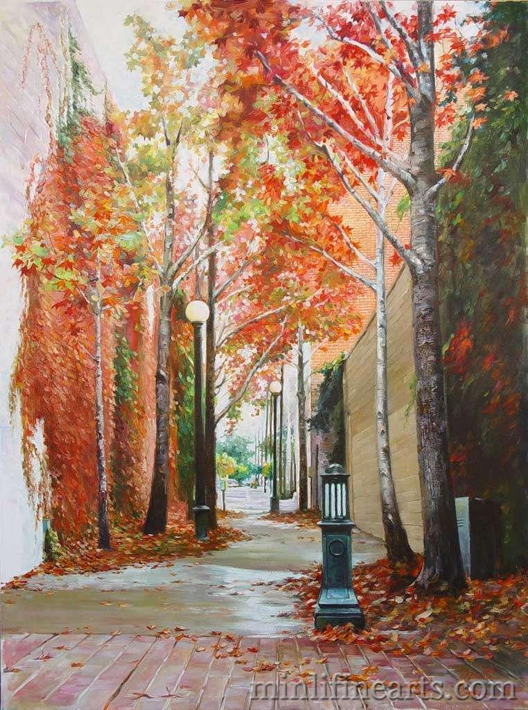 This vibrant Monrovia old town alley is ablaze with color in the fullest of autumn while the riot of russet and chestnut foliage captures the focus of this painting.