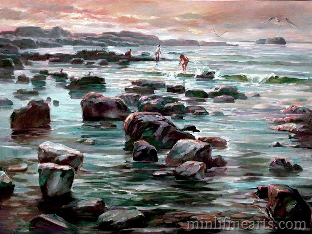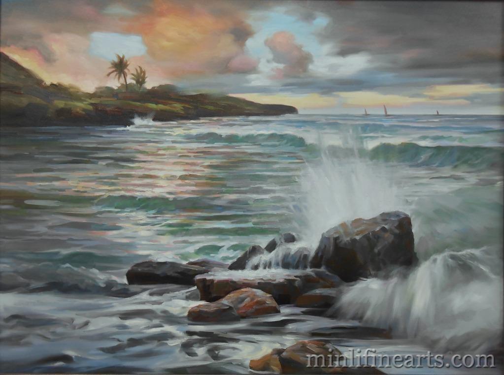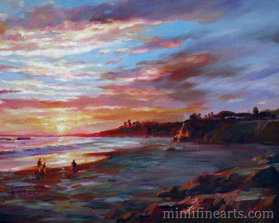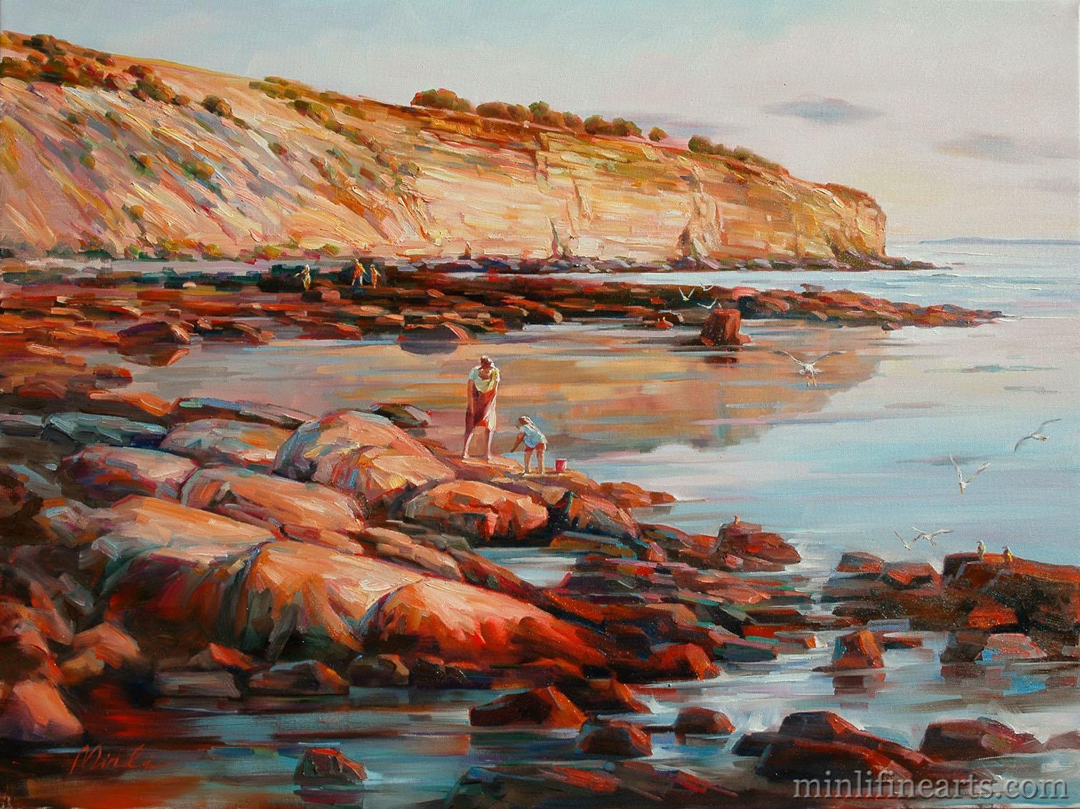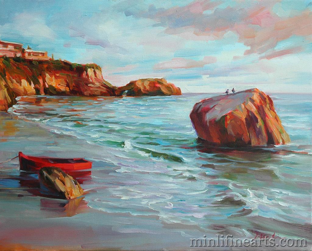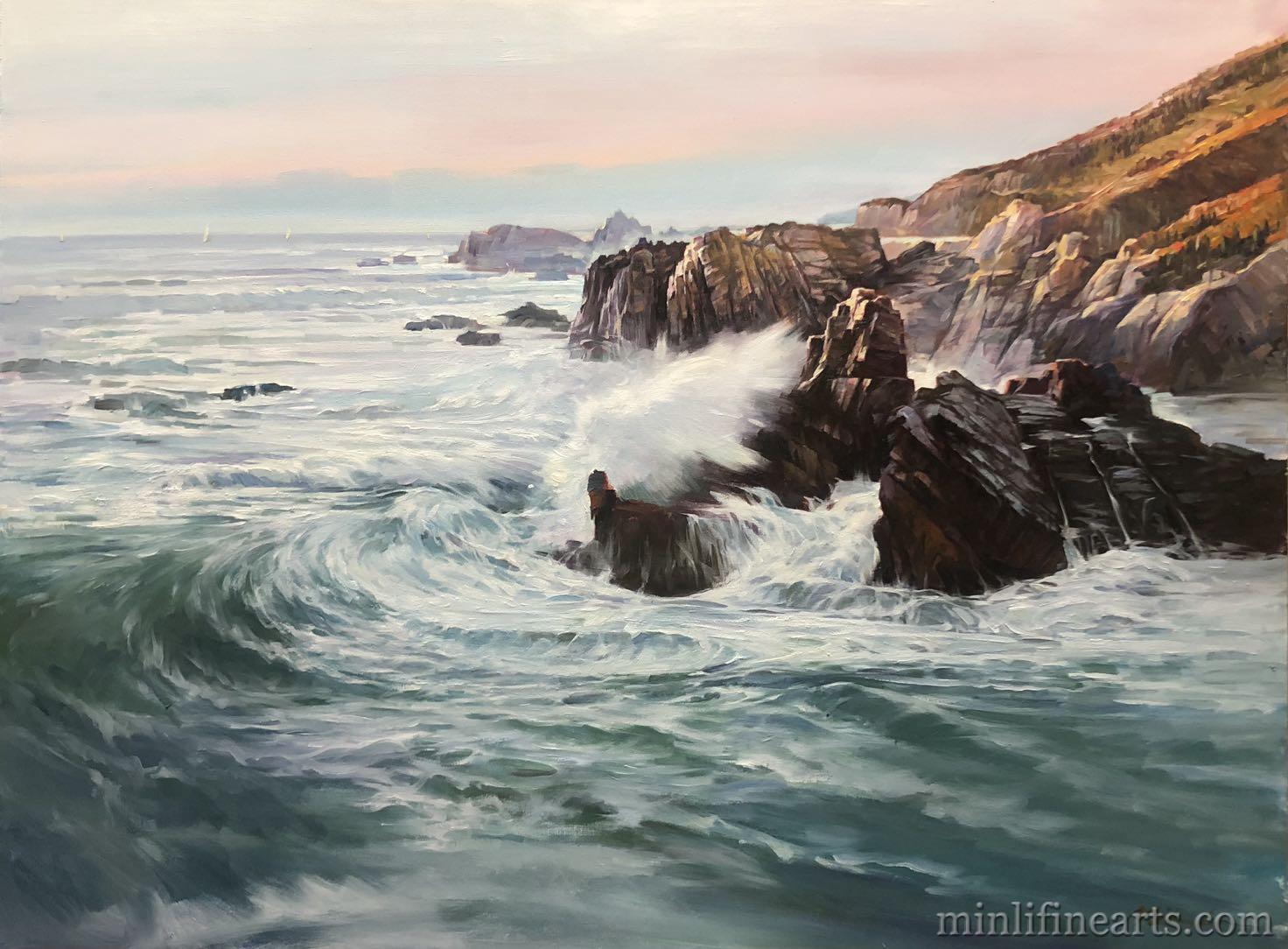 The Rancho Palos Verdes Peninsula, home to the Point Vicente Lighthouse, Marymount College and the Donald Trump Estate, is masterfully portrayed in Min’s plein air oil painting.