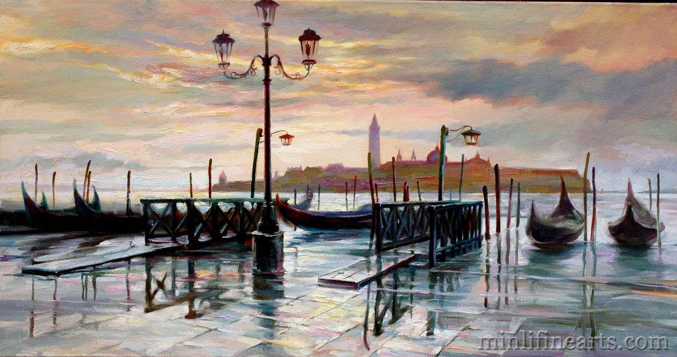 Overlooking the Campanile from the Grand Canal, Venice glows in the pastel colours of dusk. The gondolas are docked now as they have been since ancient times. The beautiful Adriatic Sea moistens the Mediterranean atmosphere. The forlorn Atlantis, a siren for company, entices Venice with its high waters.