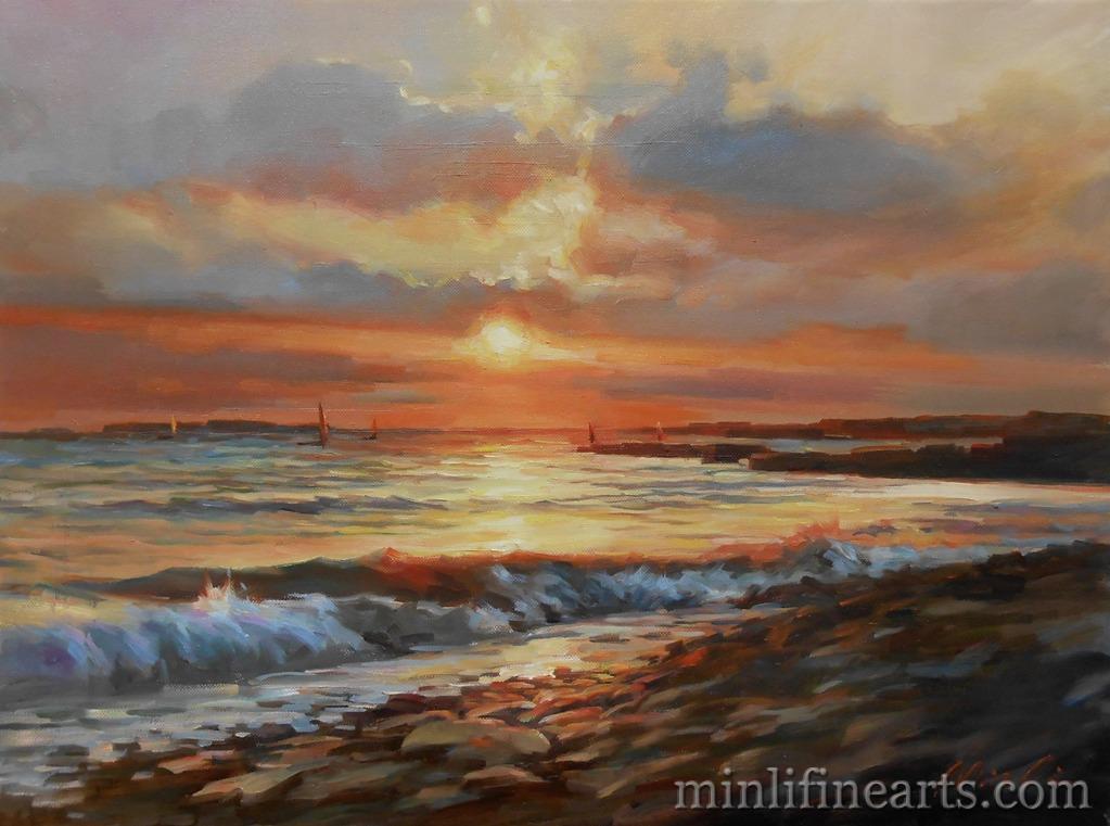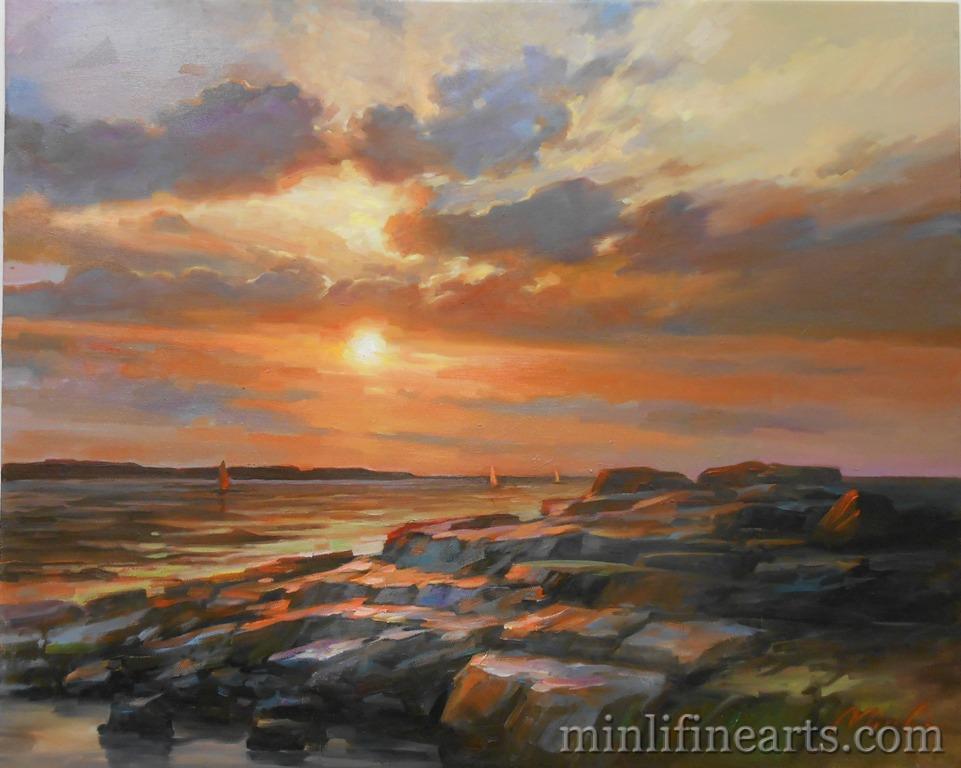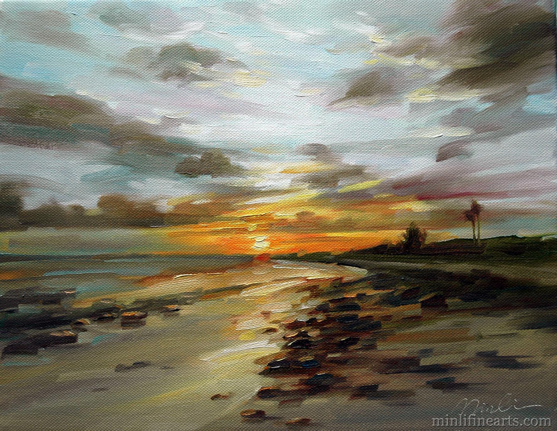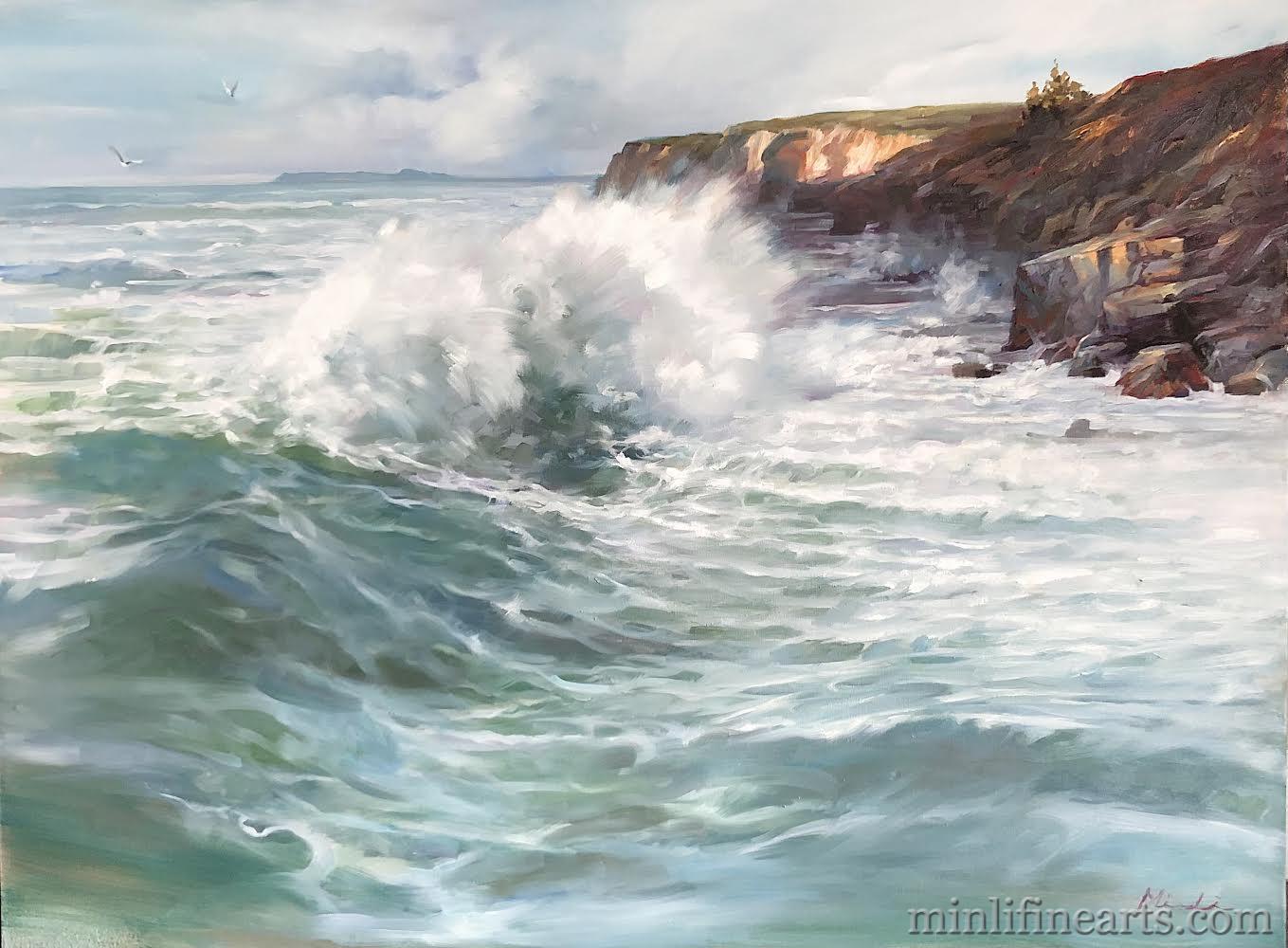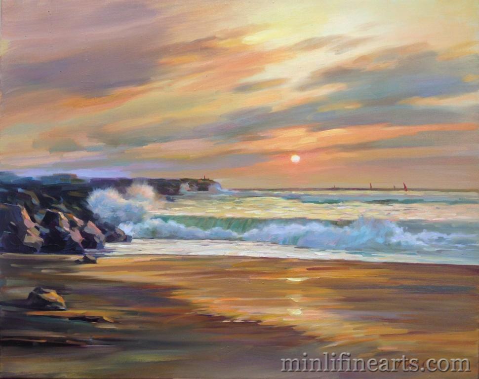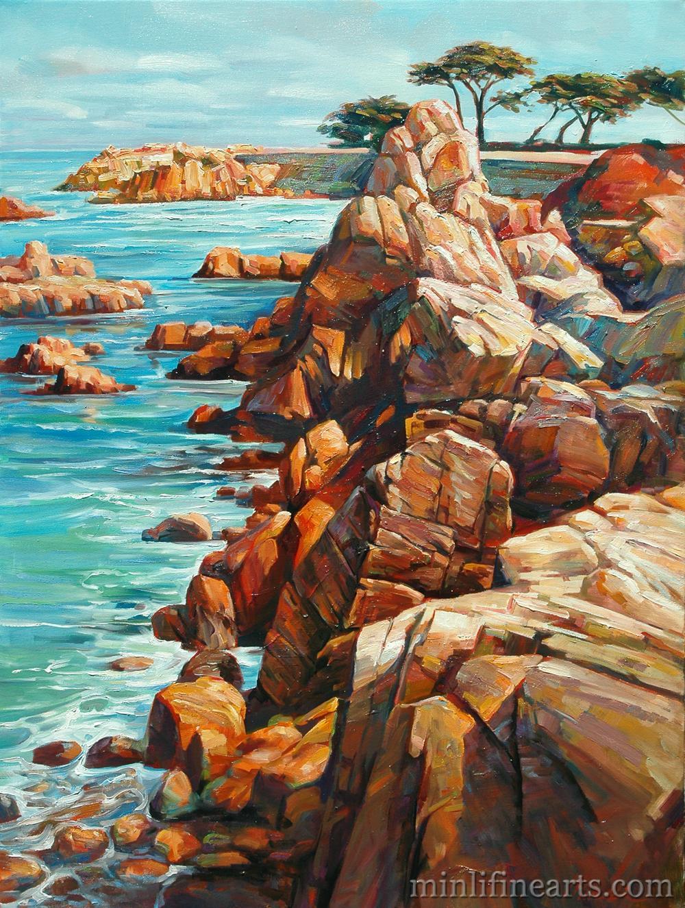 The Rancho Palos Verdes Peninsula, home to the Point Vicente Lighthouse, Marymount College and the Donald Trump Estate, is masterfully portrayed in Min’s plein air oil painting.